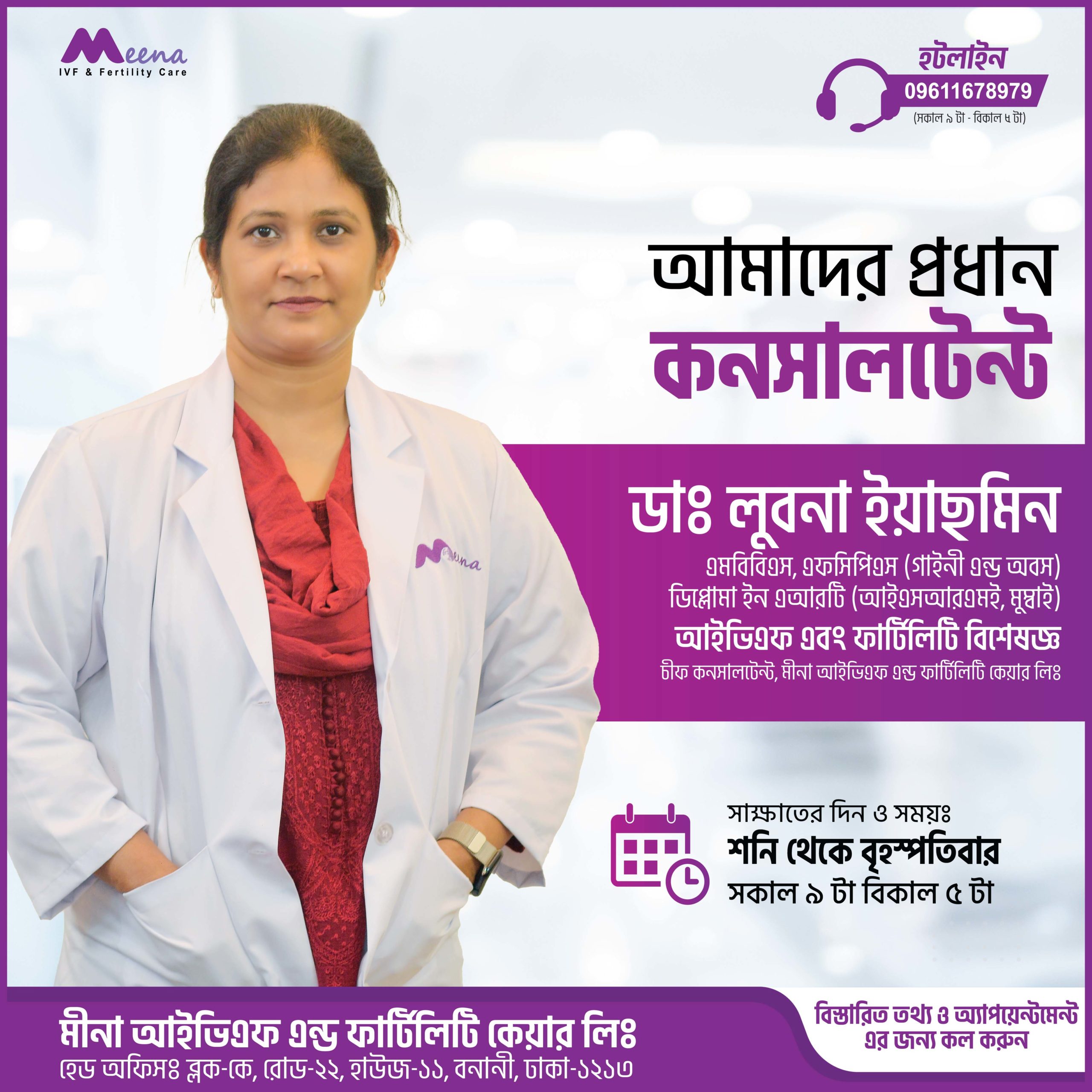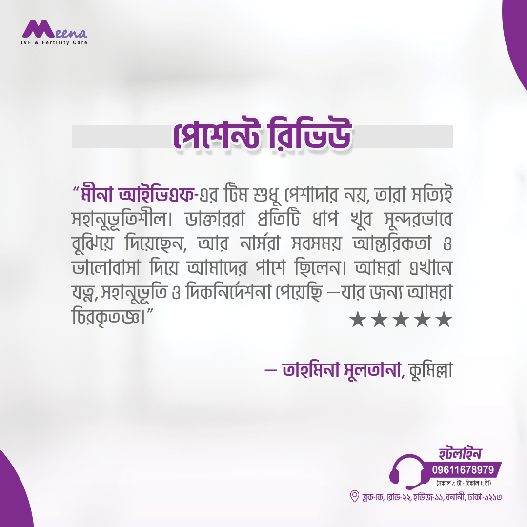 At Lifeline Diagnostic Center, we are committed to providing exceptional fertility care with the latest advancements in reproductive medicine. We are proud to offer our patients a trusted and the best fertility treatment experience through our partnership with Bangladeshi biggest ivf chain MEENA IVF & FERTILITY CARE LTD. As a MEENA IVF & FERTILITY CARE LTD Franchise, we bring the expertise and advanced technologies of MEENA IVF & FERTILITY CARE LTD to our clinic, ensuring that you receive the highest standard of care on your fertility journey. Whether you are exploring options for conception, undergoing IVF, or seeking expert advice, we are here to guide you every step of this journey.